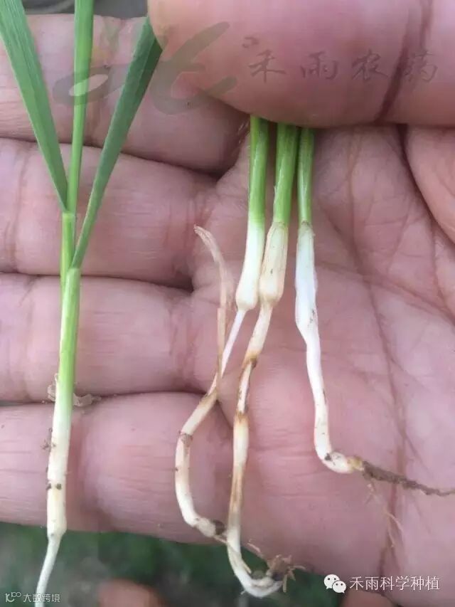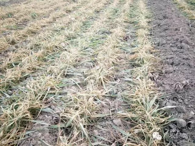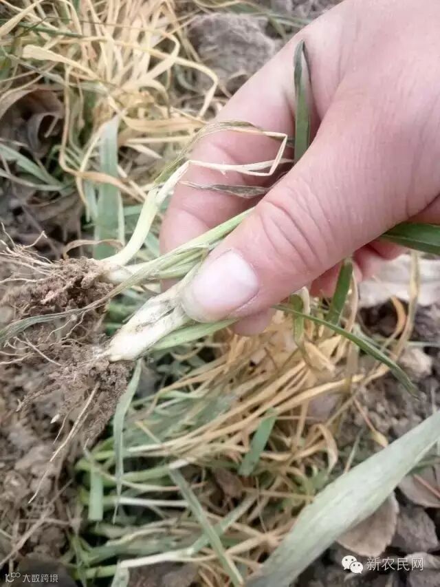 而这次冻害,主要原因是:由于前期雨水充足,墒情好,播种量又大,小麦底肥氮肥过多,与常年同期相比出苗齐,出苗快,整体出现旺长的情况,加上11月中旬骤然低温降雪天气,小麦未能逐渐低温,抗逆能力相当弱,而是跨越式接受寒冷,造成部分地块冬小麦出现叶片黄化、根系弱少、发黑腐烂、冻害干枯等现象,当然受冻情况各地略有差异,给冬小麦生长发育造成了一些不良影响。