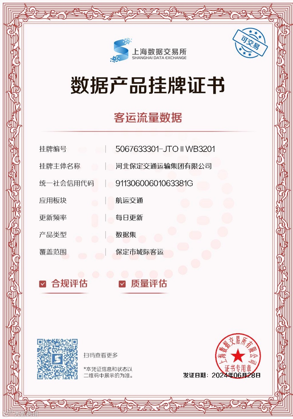 近日,保运集团在上级党委的引导下,取得了保定市第一张《数据产品挂牌证书》。