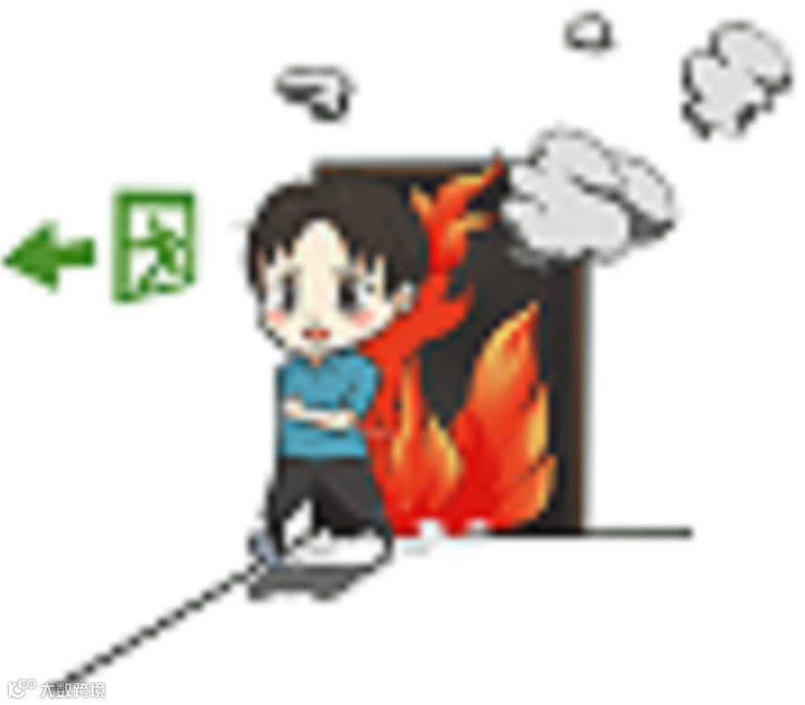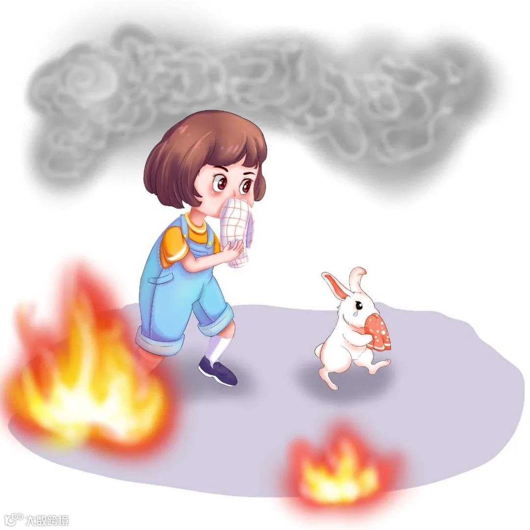 必须穿过浓烟逃生时,尽量用浸湿的衣物保护头部和身体,捂住口鼻,弯腰低姿前行。