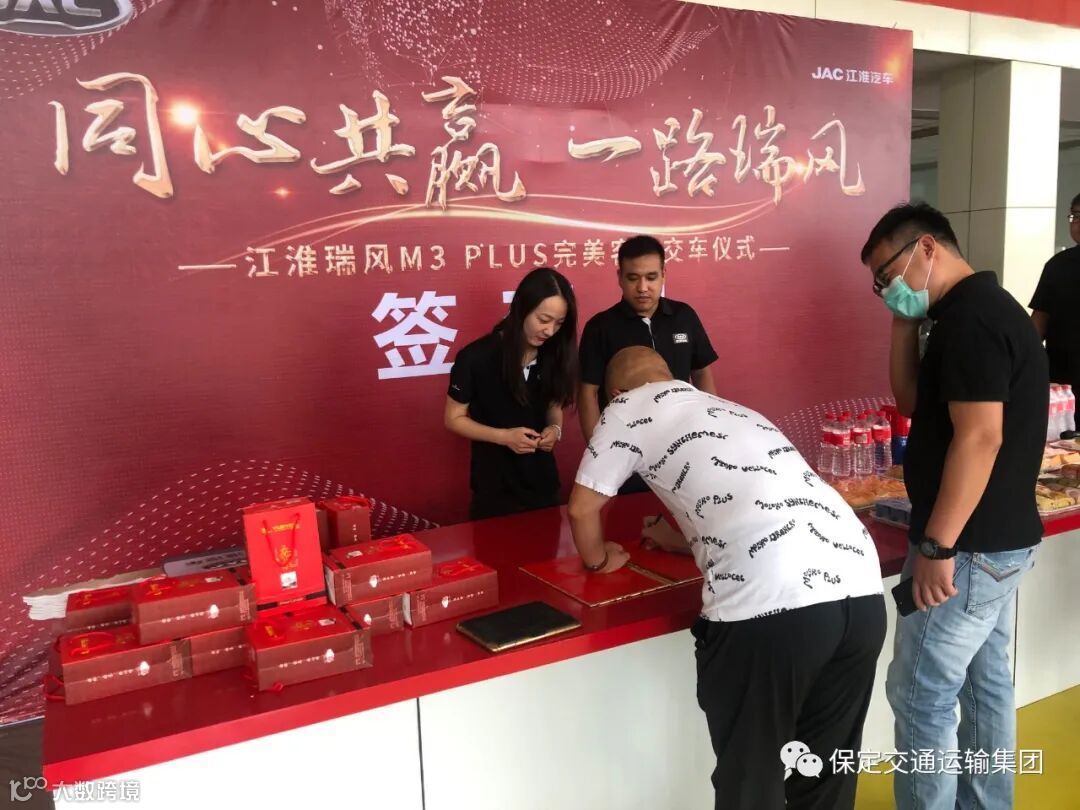 此次交车仪式在保定交运江淮店内举办,活动期间,为到店嘉宾精心准备了茶歇,大客户代表上台进行了交钥匙仪式并发表讲话,江淮瑞风M3 PLUS得到广大客户的认可,在一片欢声笑语中,保定交运完美客运交车仪式圆满落幕。