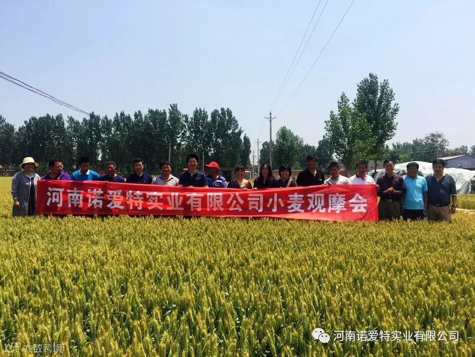 由2017年5月19日开始至5月23日为期5天的诺爱特实业有限公司小麦观摩会圆满落幕,各地客户满意而归。近年来,公司秉承为农民服务,为客户服务的原则,严把质量关,科学管理,精心培育筛选小麦品种,产品基地小麦长势喜人,丰收的喜悦气息迎面而来。来自全省各地的优秀客户对我们小麦基地进行了实地考察,农业专家现场指导,客户们亲自观看了小麦的麦秆、麦穗、株高及其他长势状况,对比了其他品种麦田,各地客户对我们基地的麦种给予了很高的评价,对品种很是满意,对接下来的麦种运营信心满满。