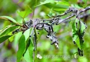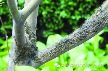 成虫产卵高峰期,树上喷药灭卵虫。