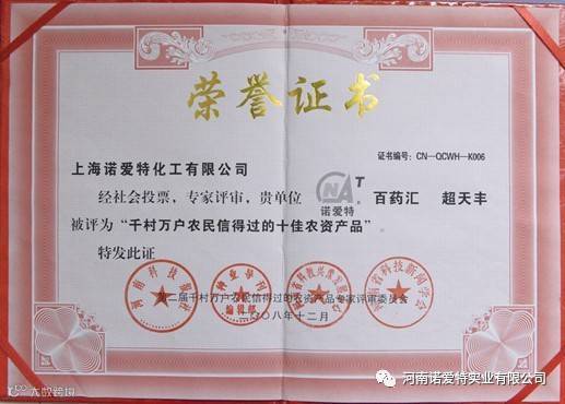 河南诺爱特实业有限公司 河南诺爱特实业有限公司,是一家致力于精细化产品研发、生产、营销、代理为一体的高新技术企业。秉承“诚信为根本,双赢为中心、客户为上帝”,勇于打造国内知名环保型农药品牌,竭诚希望与您携手共进,共创辉煌。