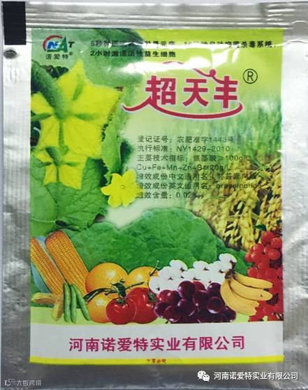 超天丰属广谱型植物生长调节剂,内含进口芸苔素内酯0.02%及公司独创激活元素,在各种作物上使用都能体现出良好的效果。超天丰具有抑制植物某些酶的活性,增强调节植物内源激素平衡,促进植物新陈代谢和光合作用,促进植物生长,解除冻害,抗涝,抗旱,达到丰收效果。