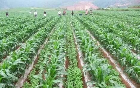 例如玉米套种大豆,大豆的根瘤菌可为玉米提供氮肥,而玉米分泌的无氮酸类,则是大豆根瘤菌所喜欢的基质。