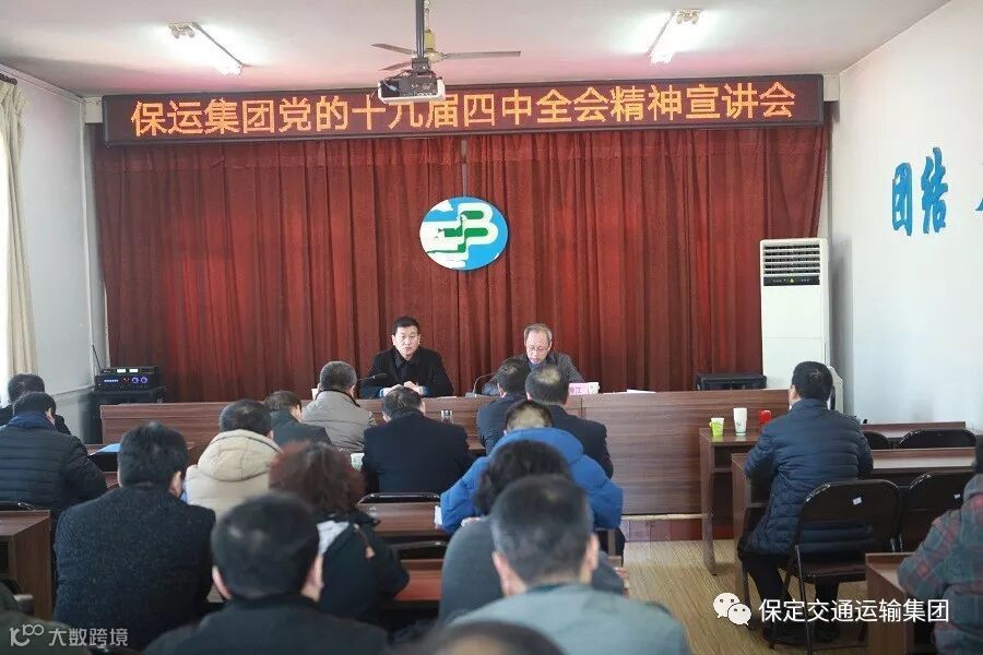 12月13日上午,保运集团组织召开“十九届四中全会精神”宣讲会。集团公司班子成员、各基层单位党政负责人、专职副书记、机关各部室主要负责人参会。