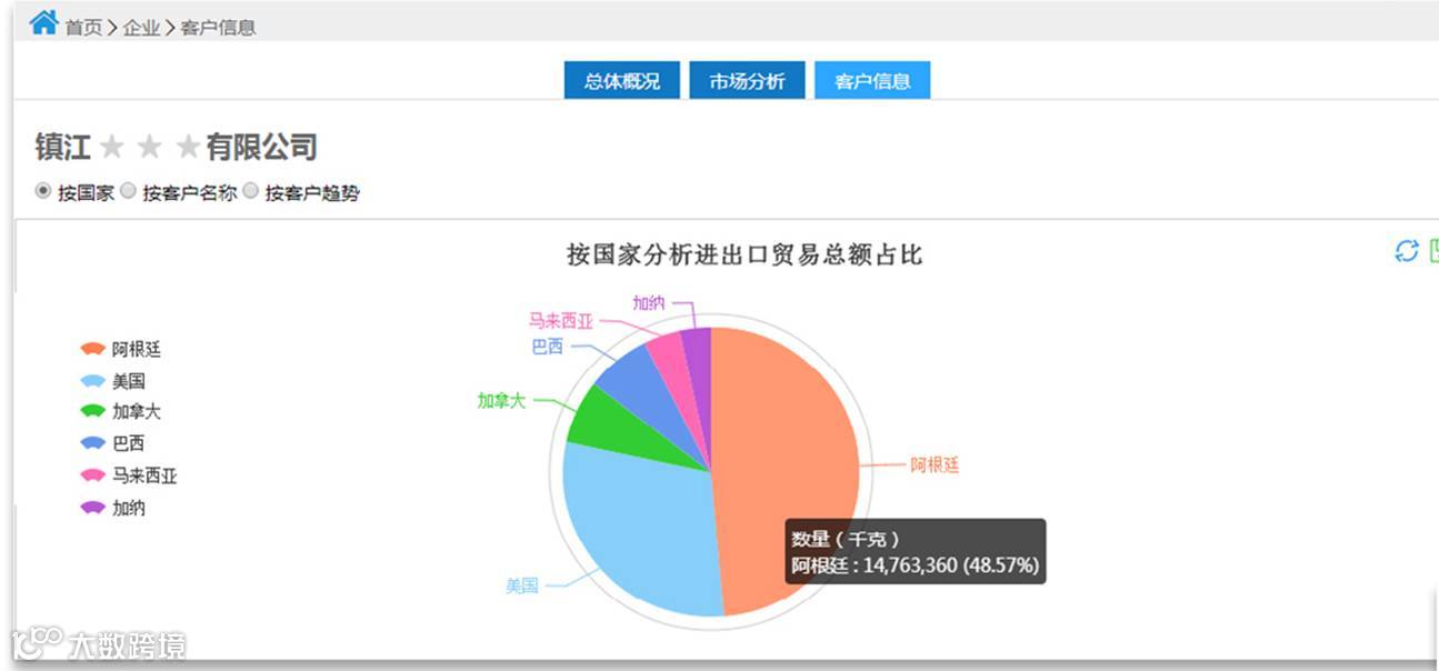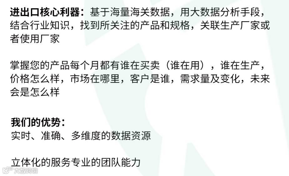 了解其产品整体的国外市场需求行情,需求量的变化等,通过进出口情况判断或预测市场趋势和动态