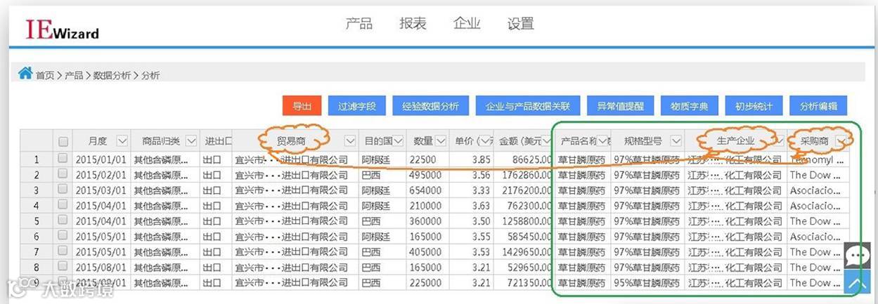 生产商、贸易商与终端买家的点对对供需匹配。包括他们的合作关系,产品含量,供货数量,合作价格等实际情况