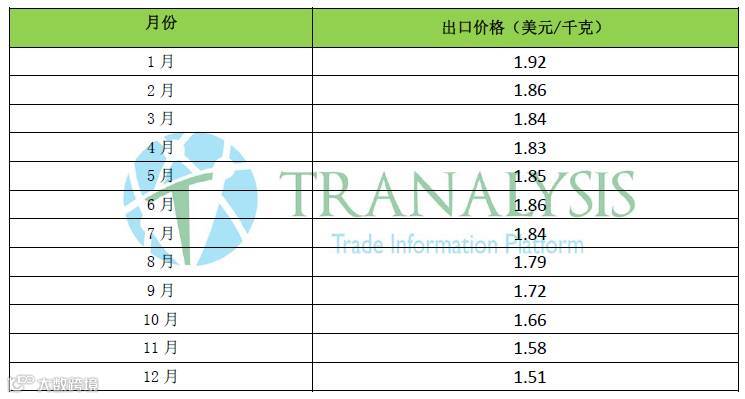 价值:掌握目标产品的年度贸易价格趋势,分析出目标商品的淡旺季价格变化,为目标商品上下游的生产厂家与采购商提供价格策略的依据。
