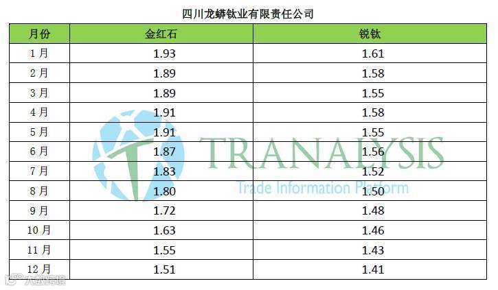 表3:2015年 钛白粉 主要生产商 月度出口价格(美元/千克)
