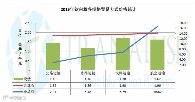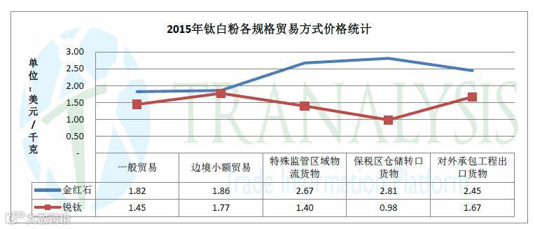 表9:2015年钛白粉各规格贸易方式价格统计(美元/千克)