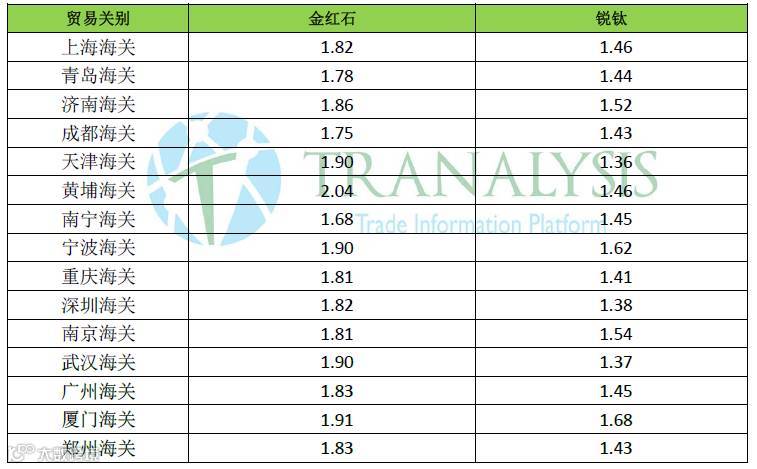 价值:了解不同规格的商品在各海关的年度/季度/月度贸易价格