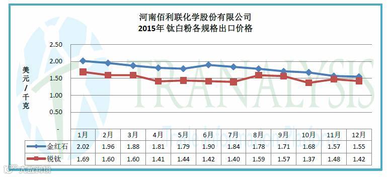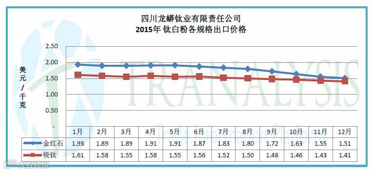 表2:2015年 钛白粉 主要生产商 月度出口价格(美元/千克)