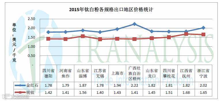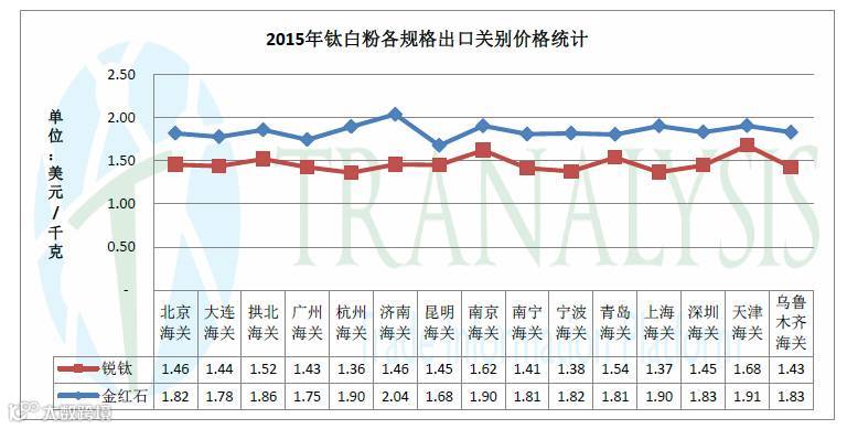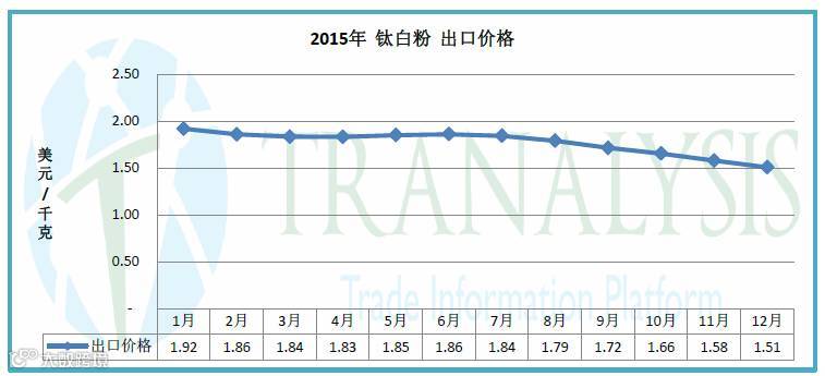 图1:2015年 钛白粉 出口价格(美元/千克)