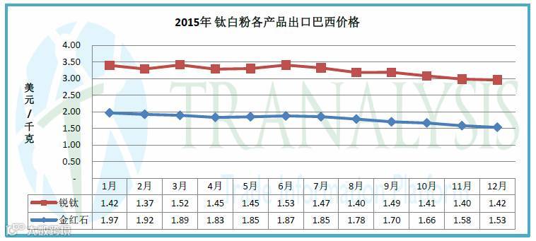 表1: 2015年 钛白粉 出口价格(美元/千克)