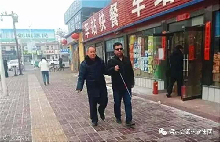 2月12日下午两点左右,孙军亮像往常一样到保定去石家庄的发车口检查工作,看到一位40多岁的中年男子戴着墨镜,拿着手杖摸索着走向餐馆,看的出来是一位视障人士。于是,孙军亮赶紧走上前询问:“你是要吃饭吗?我扶你进去吧,小心台阶!”“不,我要去汽车站。”中年男子急忙回答。