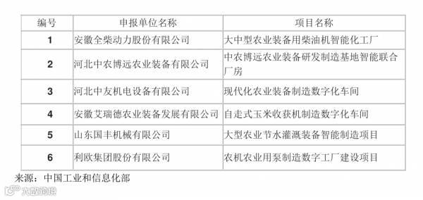 今年有17家农机制造企业申报了智能制造项目,其中有6家企业申报成功。这6家企业每家都有一个项目成功入选智能制造专项项目。成功入选的6个项目中,其中5个是关于数字工厂建设的项目。这表明,针对农机行业,数字化工厂是国家支持的重点。