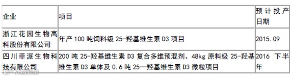 据了解,中国2014年2月允许饲料行业使用25-羟基维生素D3;2014年10月,山东海能生物工程有限公司就正式向市场推出其新产品25-羟基维生素D3;此后,花园生物、四川菲派生物科技有限公司(菲派生物)陆续计划生产25-羟基维生素D3项目。