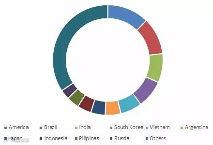 2015年4月,四川龙蟒的钛白粉出口目的地分布情况