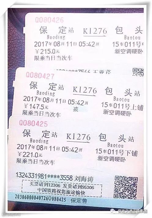 近日,安新656班线驾驶员米建军驾驶冀FG8252号车顺利完成一天的班线任务,在清扫车厢卫生时,发现乘客座椅上有三张火车票,米建军立即拿起车票仔细查看,票面显示8月11日由保定发往包头,票价总额500多元。他迅速将车票送到分队办公室,希望能尽快物归原主。虽然火车票是实名制,但只有姓名并没有联系方式。为了尽快找到失主,不耽误几天后失主的正常出行,行车一队支部书记翟志广试图与铁路部门取得联系找到失主,但并未成功。正当大家苦于无法与失主取得联系时,刚刚出车归来的王小强、杨志刚两位师傅提出将车票发到朋友圈,利用微信平台寻找失主。说做就做,大家立即拍照片、上传、编辑信息、发送,并呼吁朋友圈的好友转发。