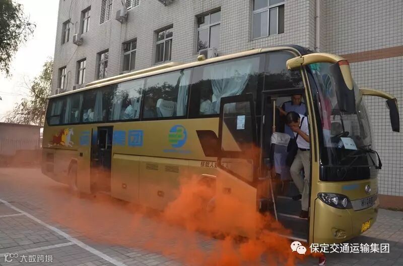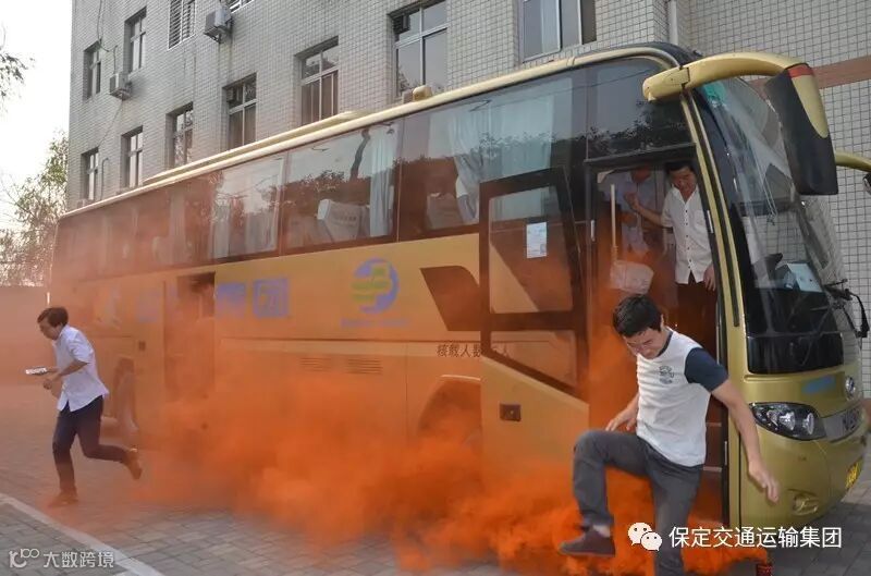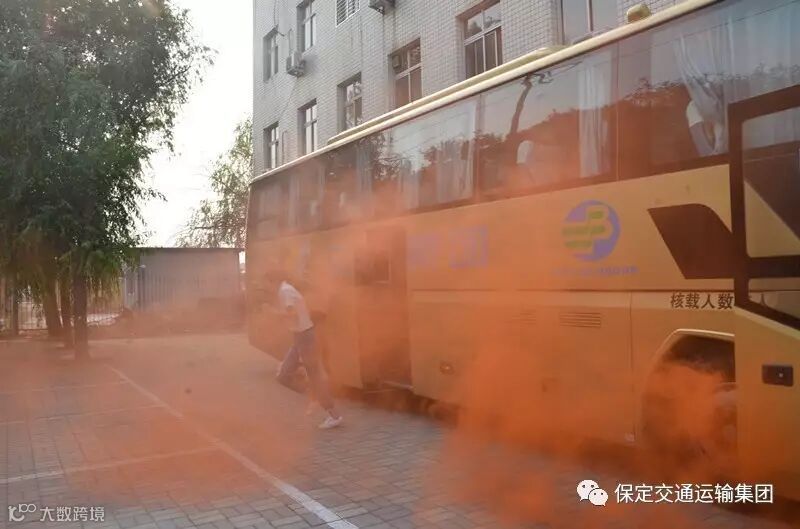 为了让大家学以致用,五公司准备消防演练车辆让大家参与客车起火后的逃生演练。曾教官上车讲解了安全锤的正确使用方法和逃生技巧,并用烟雾弹模拟火灾现场,职工们实地参加了逃生疏散演练。最后,在公司办公楼前,曾教官根据假设的起火点讲解示范消防器材使用方法,参演人员代表亲自操作灭火器。