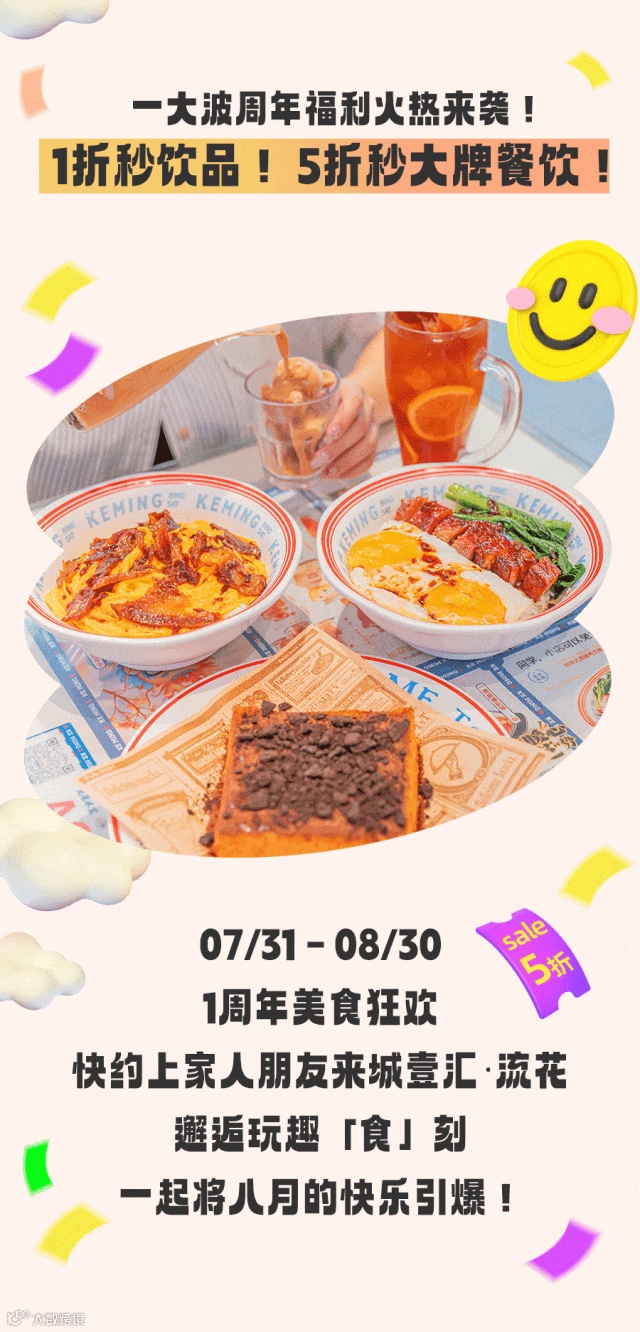 美食狂欢火热来袭,足足10+大牌餐饮参与统统低至5折,快带上你的饭搭子一起开启畅吃畅喝之旅!