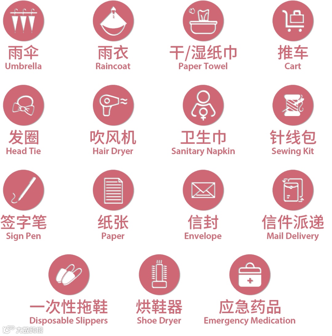 “祈享服务”涵盖了各种日常所需物品,从雨伞、雨衣到纸巾、推车,再到吹风机、针线包等,一应俱全,而且全部免费!租户凭IC卡登记,就能借用所需物品,享受这份体贴入微的温度服务。