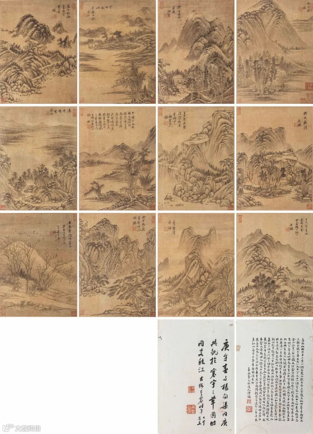 王鉴(杨问渠、饶芙裳题)山水册页(十二开)