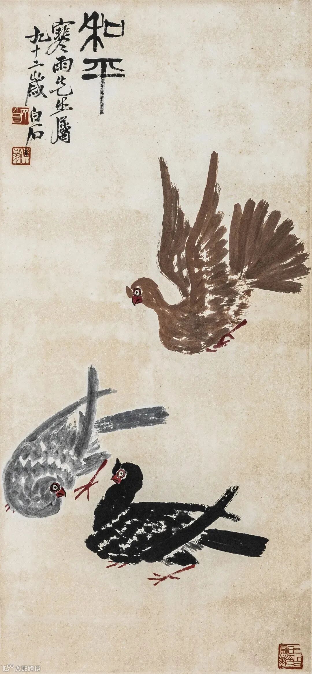 本次拍卖会现场与网络竞价气氛热烈,多件珍品均以高价成交。其中,经由多位名家题跋的陆俨少《雁荡奇姿》以260万元落槌价荣膺本场魁首;任伯年《秋圃德禽》以170万元落槌,位列第二;齐白石《和平》以150万元落槌价紧随其后,位居成交榜前三甲。