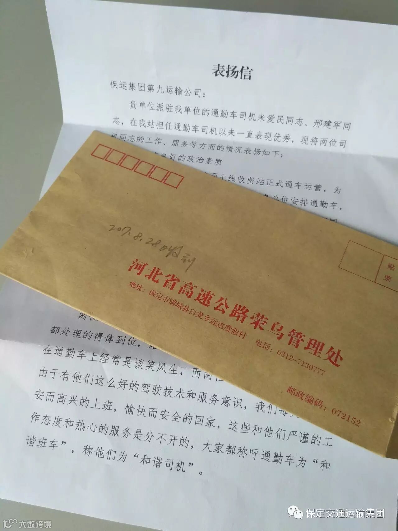 8月28日,九公司收到河北高速公路荣乌管理处的一封来信,盛赞九公司通勤班车驾驶员米爱民、邢建军驾驶技术优良,服务意识一流,堪称为新时代“和谐好司机”。