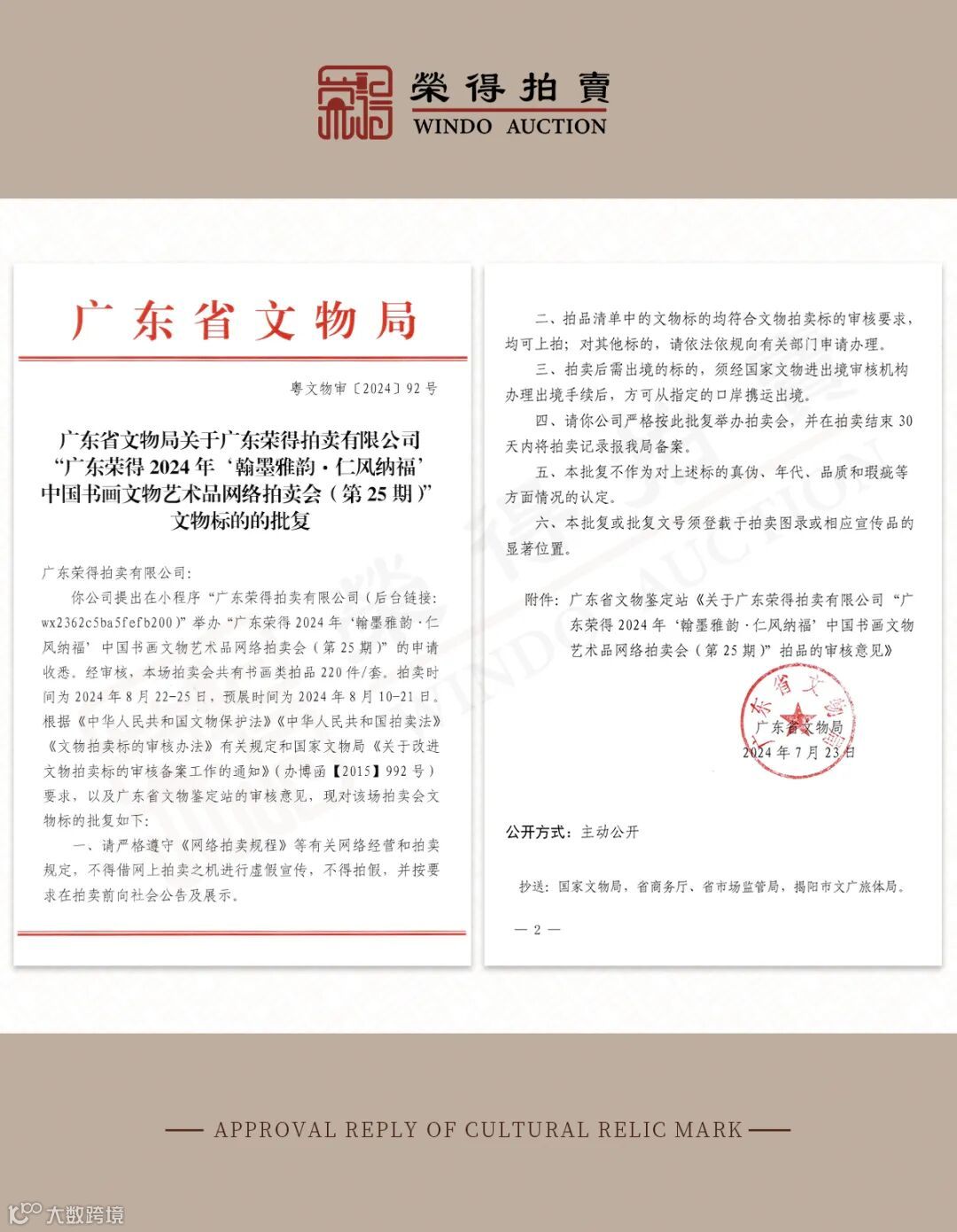 结拍时间:8月25日 早上09:30时间顺延(逐件结拍,时间间隔3分钟)