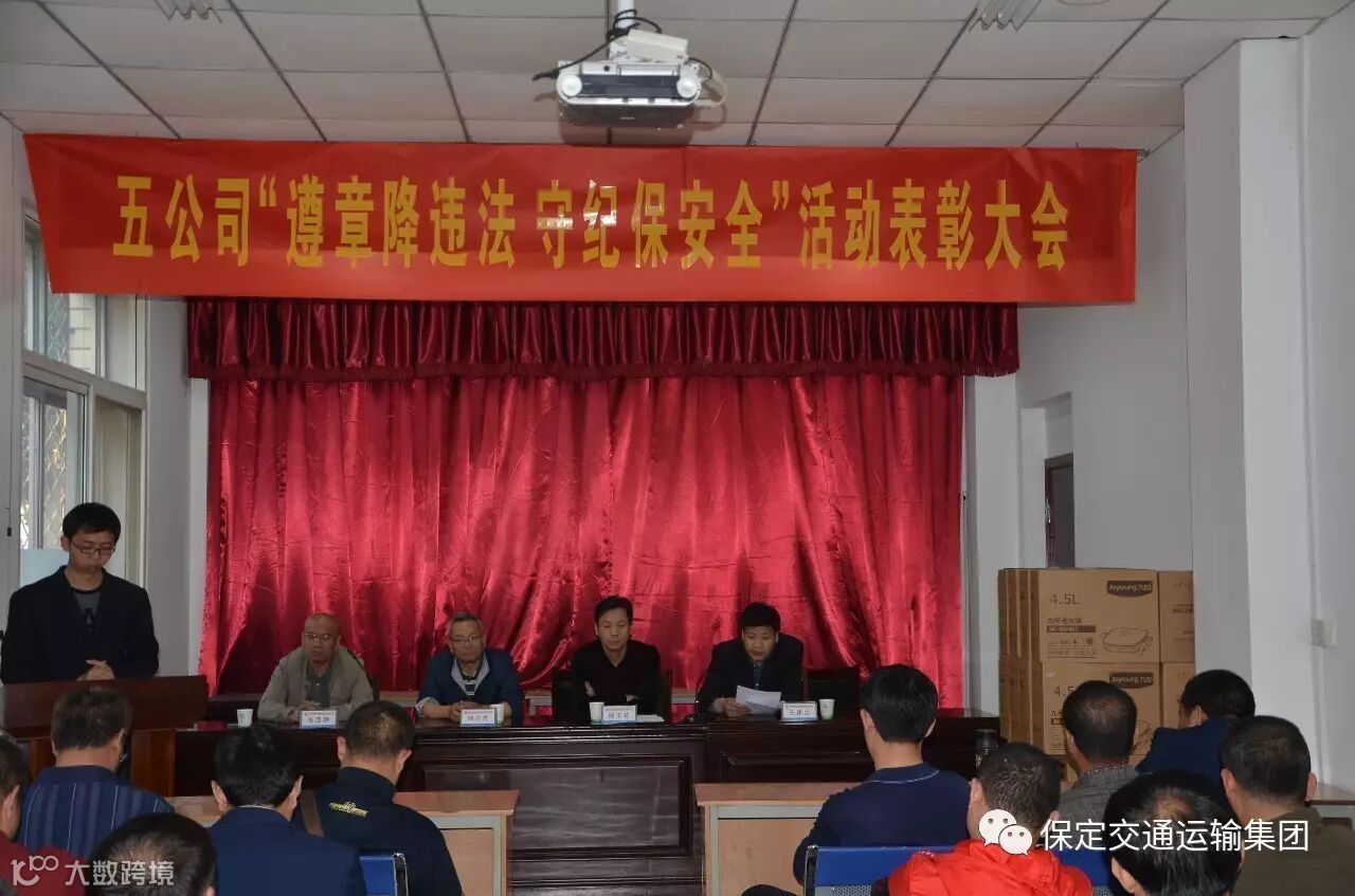 4月25日下午,五公司召开了“遵章降违法,守纪保安全”活动表彰大会。五公司领导班子成员、安管人员、队管人员以及所有的回场驾驶员参加表彰会。