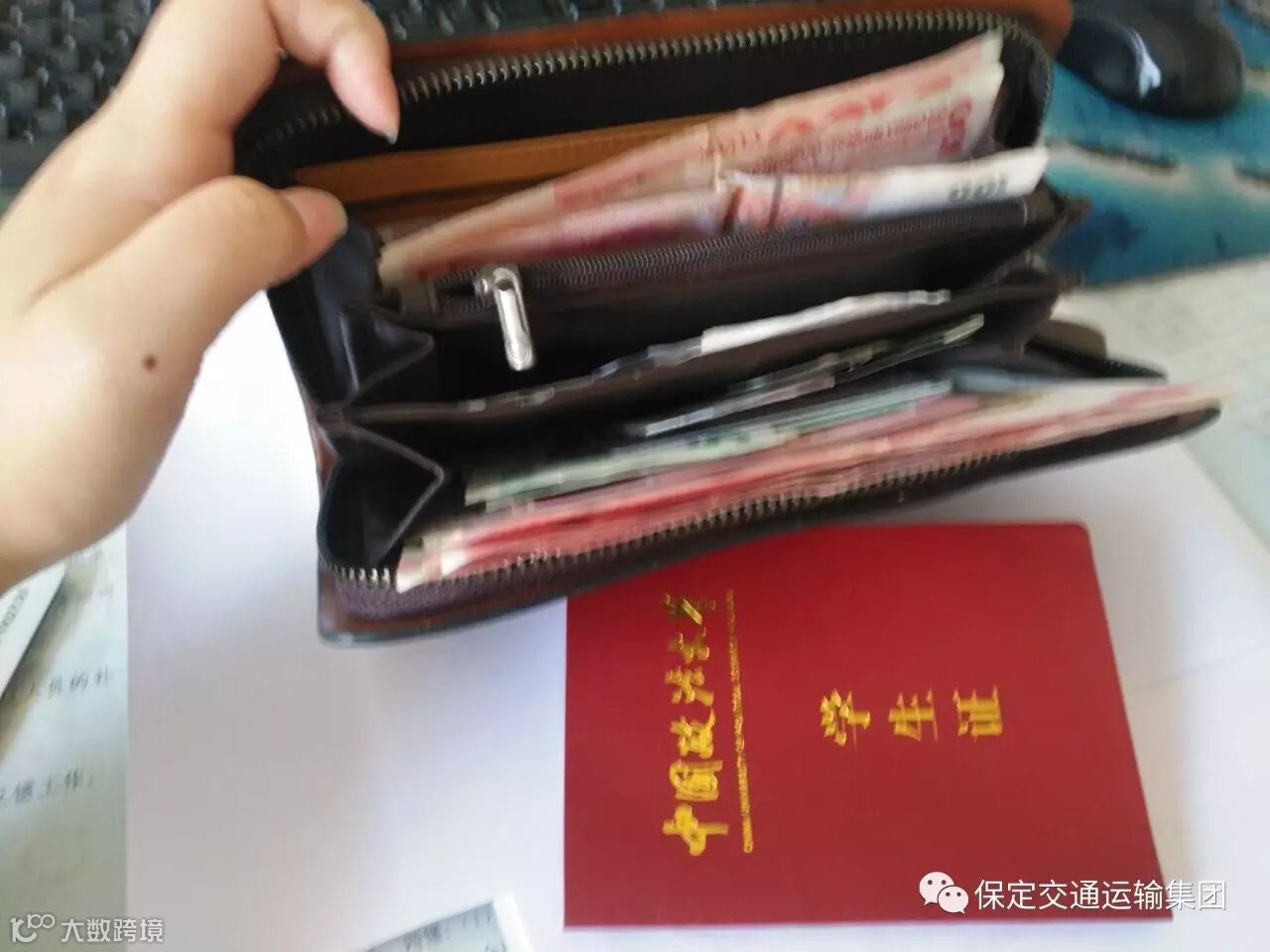 原来,许铄岩乘坐的是631公交13176车,该车乘务员王锦在打扫车辆卫生时,捡到了许铄岩的钱包。为了慎重起见,王锦将钱包交回乘务队,与乘务队值班人员一起打开钱包,发现里面有2000余元现金、身份证、学生证等。正在乘务队打114询问中国政法大学电话时,客二队打来电话说失主打电话寻找钱包了。在与失主沟通后,失主决定到定州汽车站乘务队领取钱包,当面表示感谢。
