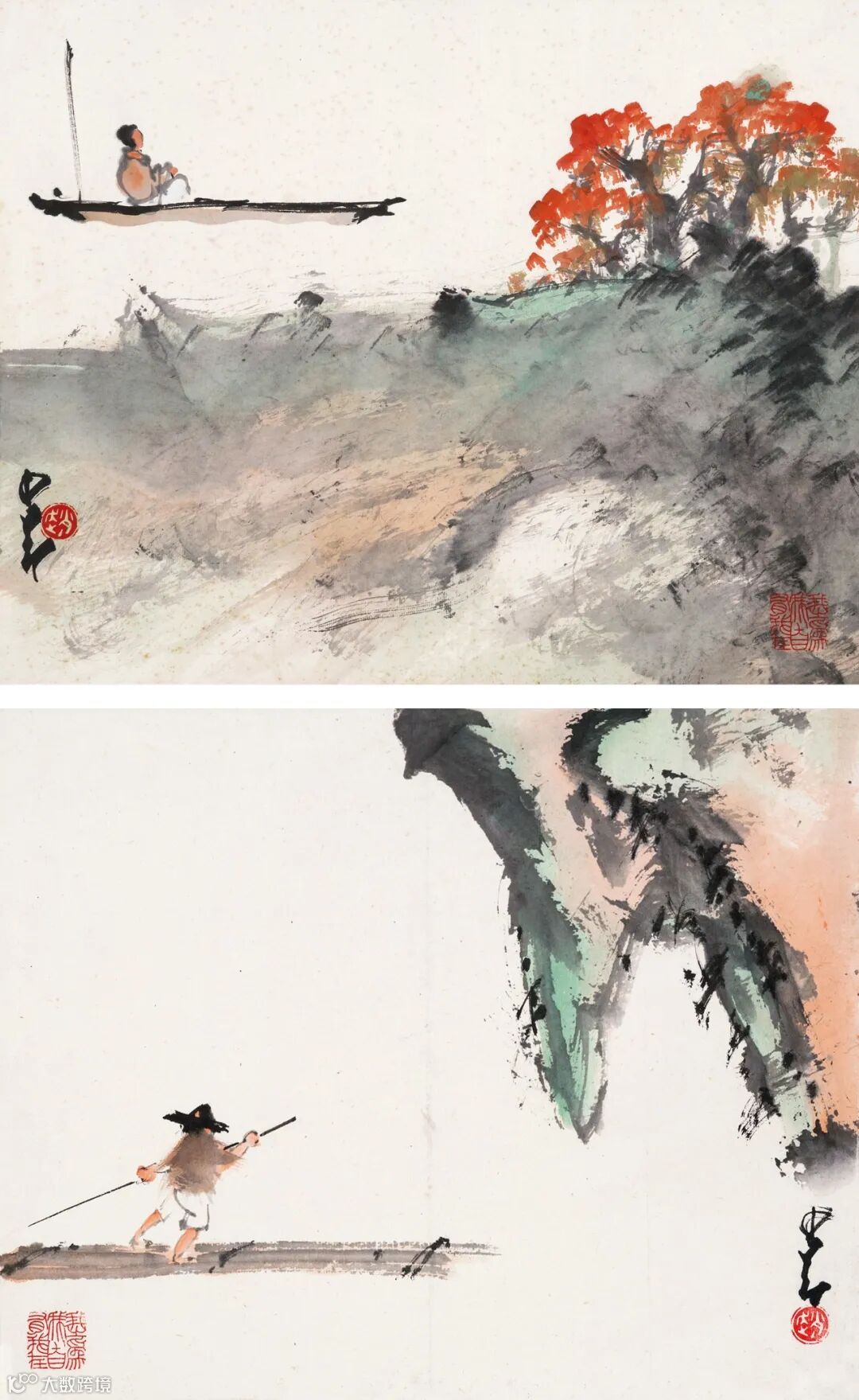 【款识】渔乐图。癸巳长夏,岭南欧豪年。