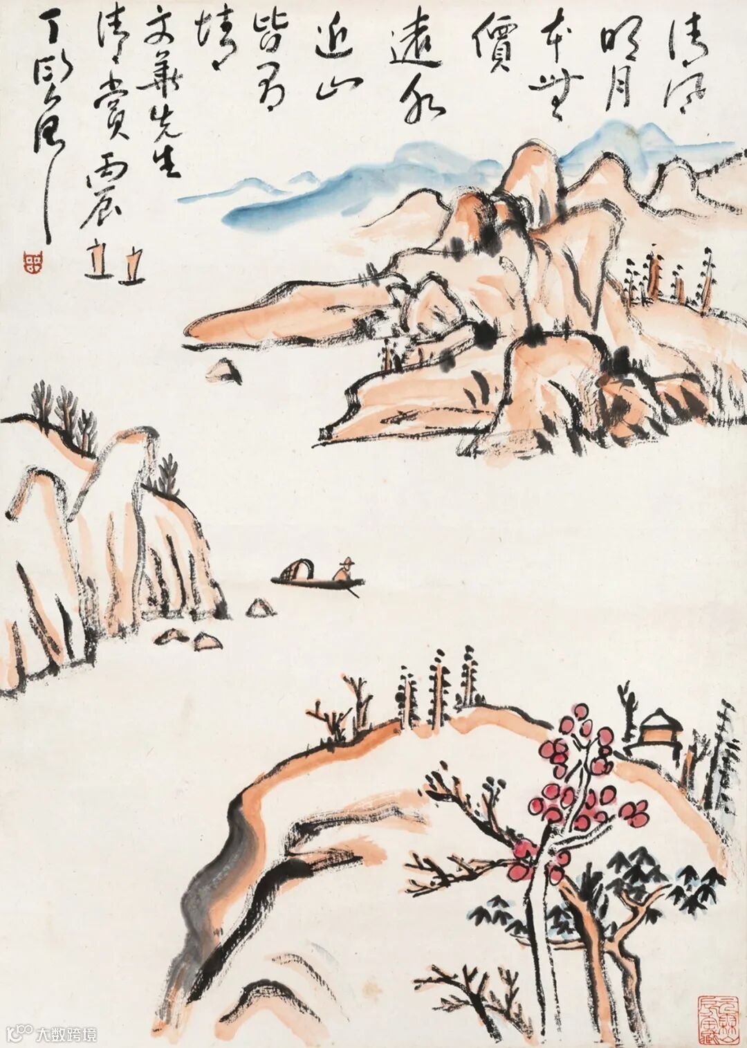 【款识】清风明月本无价,近水远山皆有情。文华先生清赏,丙辰丁衍庸。