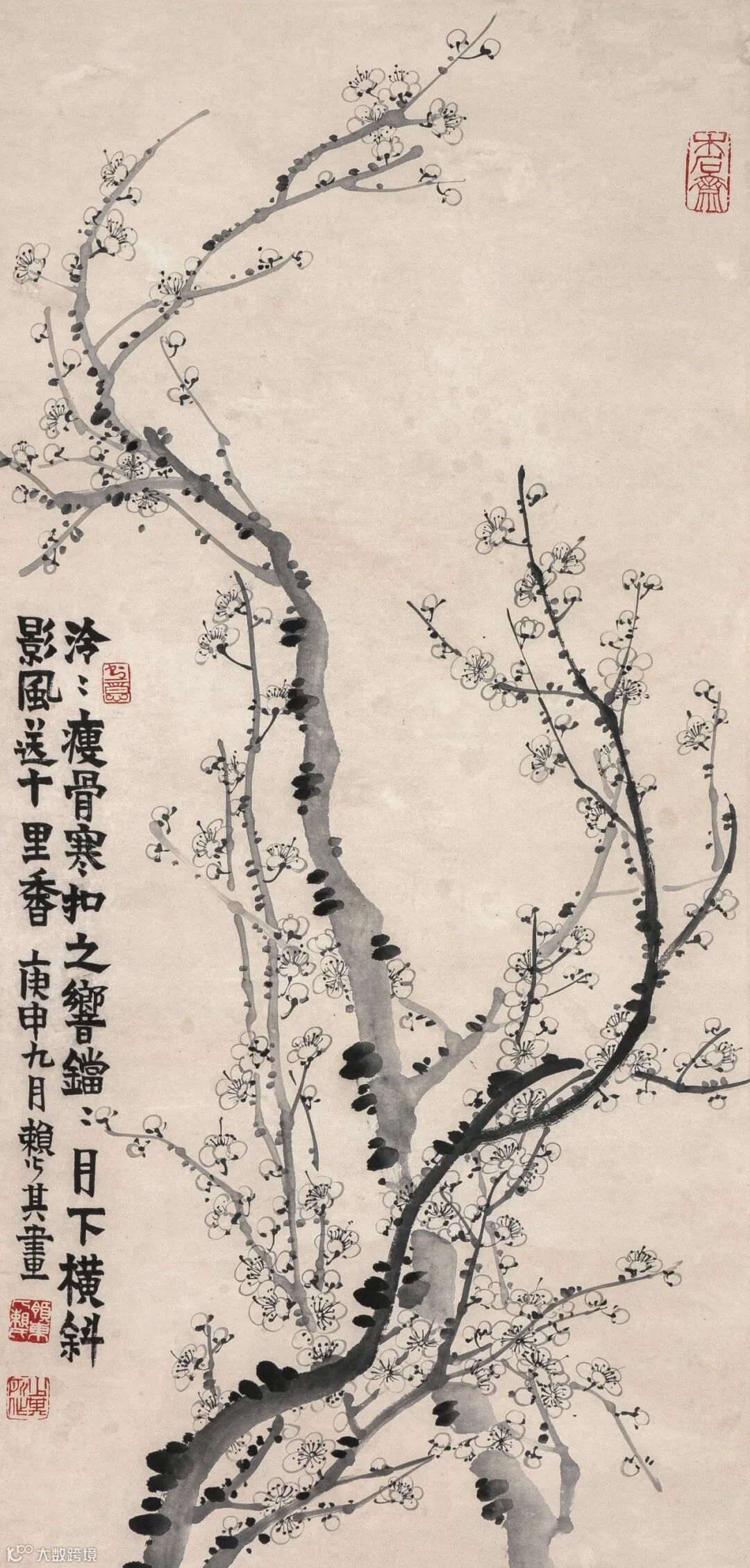 【款识】二月梅花正春风,自罗花枝在胸中。上苍助我非功力,世上何人识吾锋。庚辰秋月,阿万提。