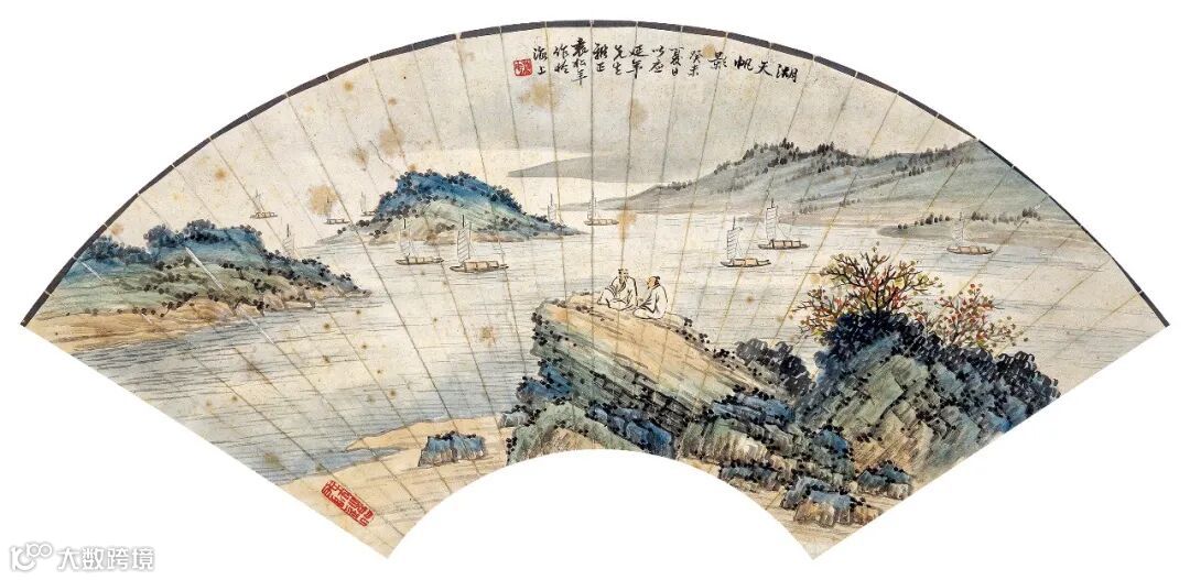 【款识】湖天帆影。癸未夏日,以应延年先生雅正,袁松年作于海上。