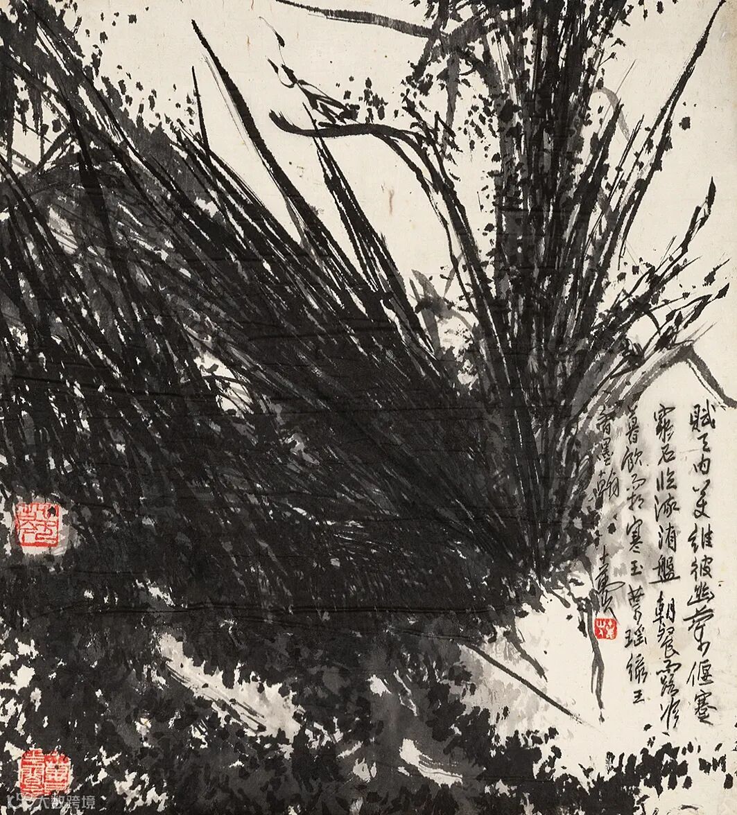 【款识】赋与内□,维彼幽兰。偃蹇穷石,临流洧盘。朝餐露冷,暮饮霜寒。玉叶瑶绿,王香墨翰。十万山人。