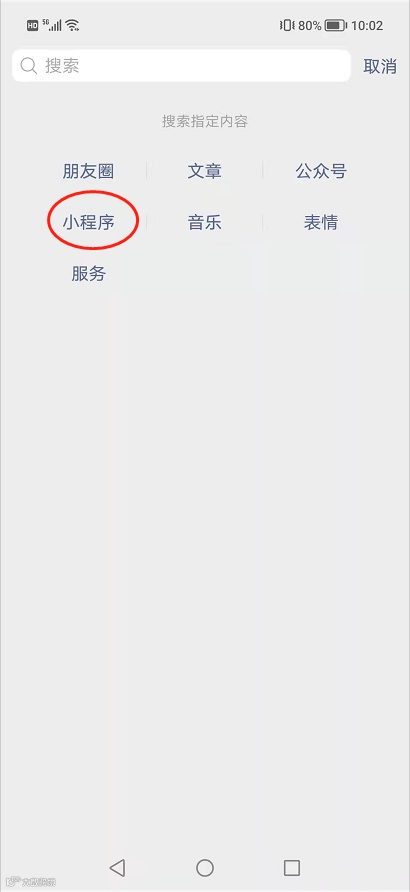 1.打开微信搜索,点击【小程序】