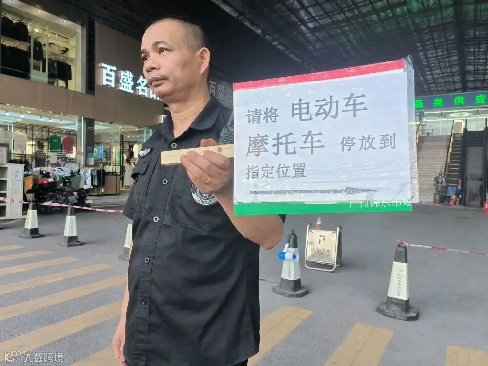 图为锦东服装城安保人员引导停车画面
