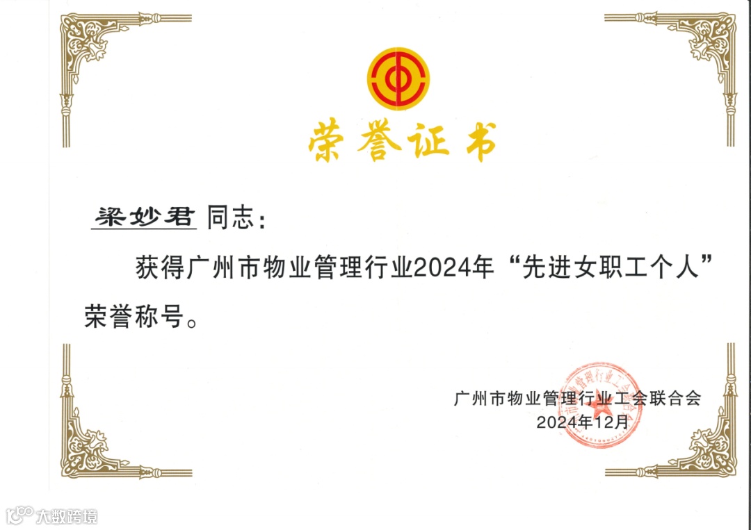 广州城投物业还收获了2024年“年度贡献会员单位、2024年“优秀学习型企业”、2024年“模范职工之家”、2024年“优秀供应商”等荣誉称号。