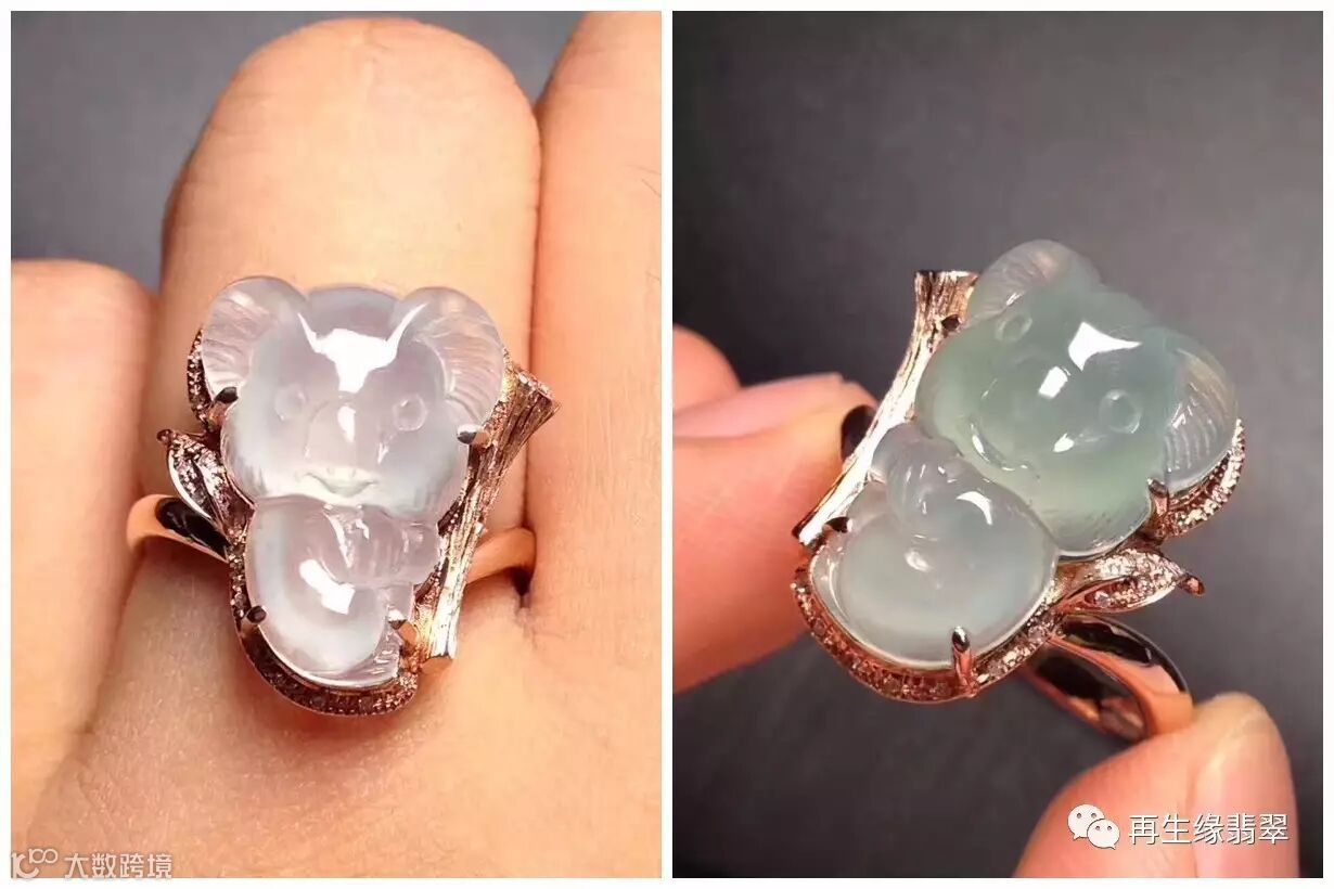 不过,这平日都赖着树的懒考拉,居然爬到翡翠上面去了!再生缘的一只翡翠考拉戒指把所有人都给萌化了。谁说翡翠戒指都是那种刻板保守的样式?玲珑通透的小考拉镶嵌在金指环上,用它的可爱中和了金指环和碎钻的严肃,让这个翡翠戒指变得俏皮活泼起来。看着它那灵动的小眼神,消失已久的孩童心一下子泛滥起来,小编已经被它完全打败啦。▼