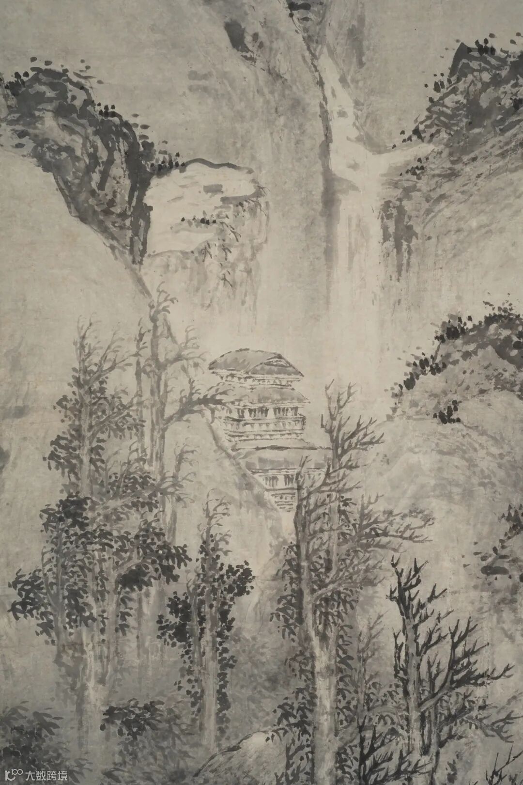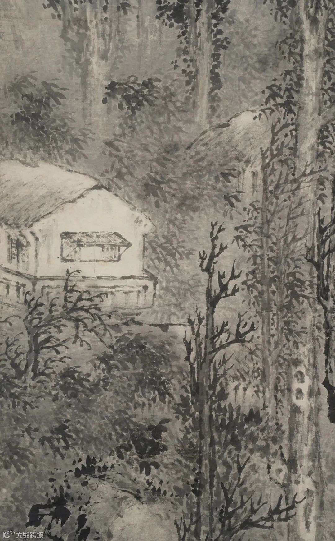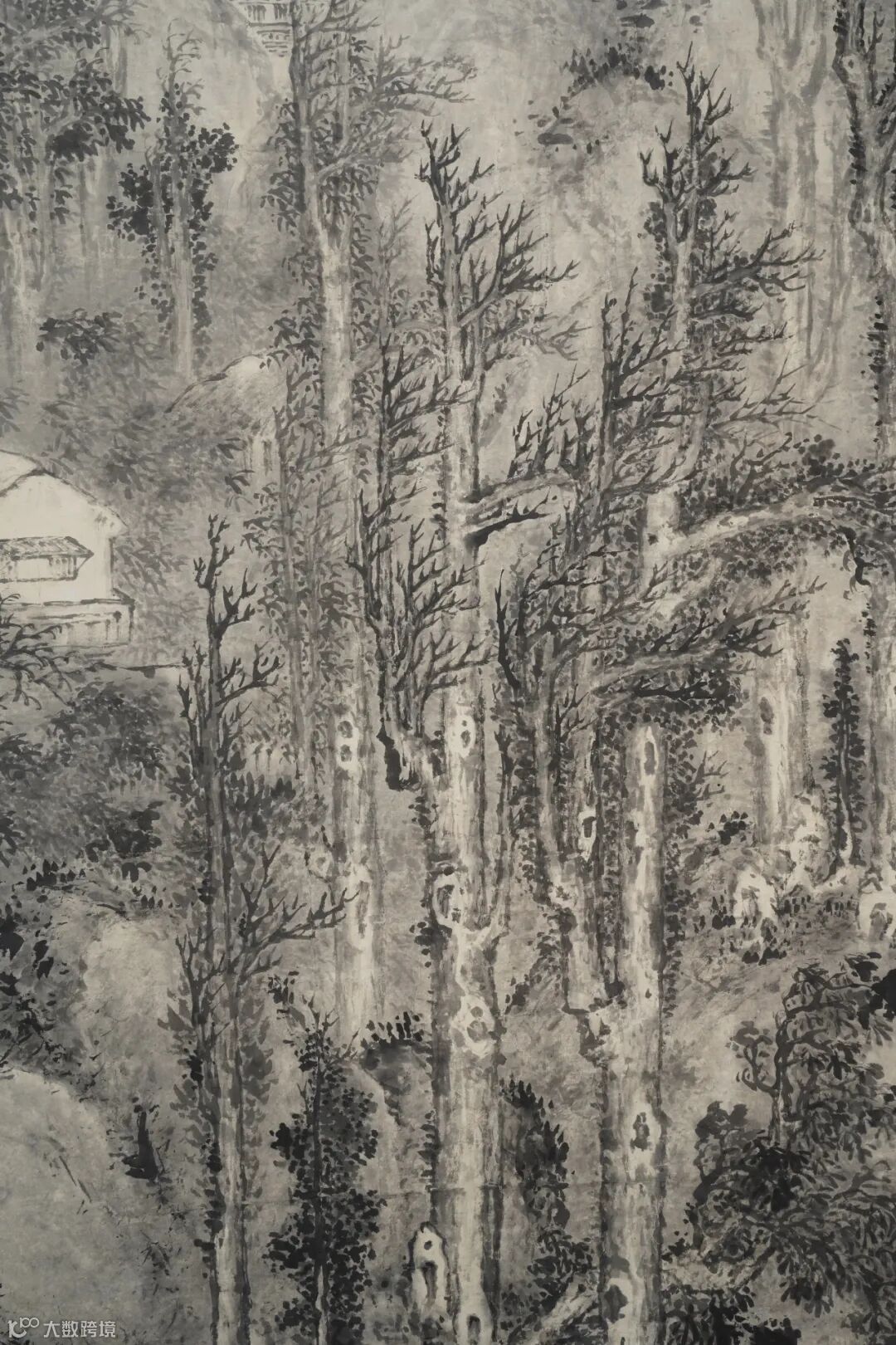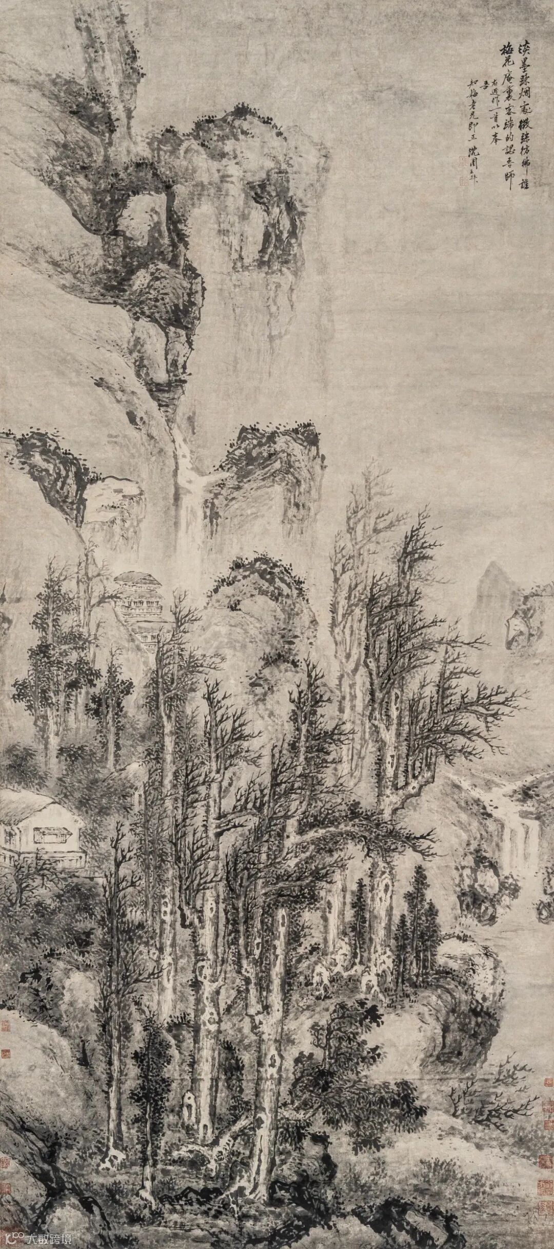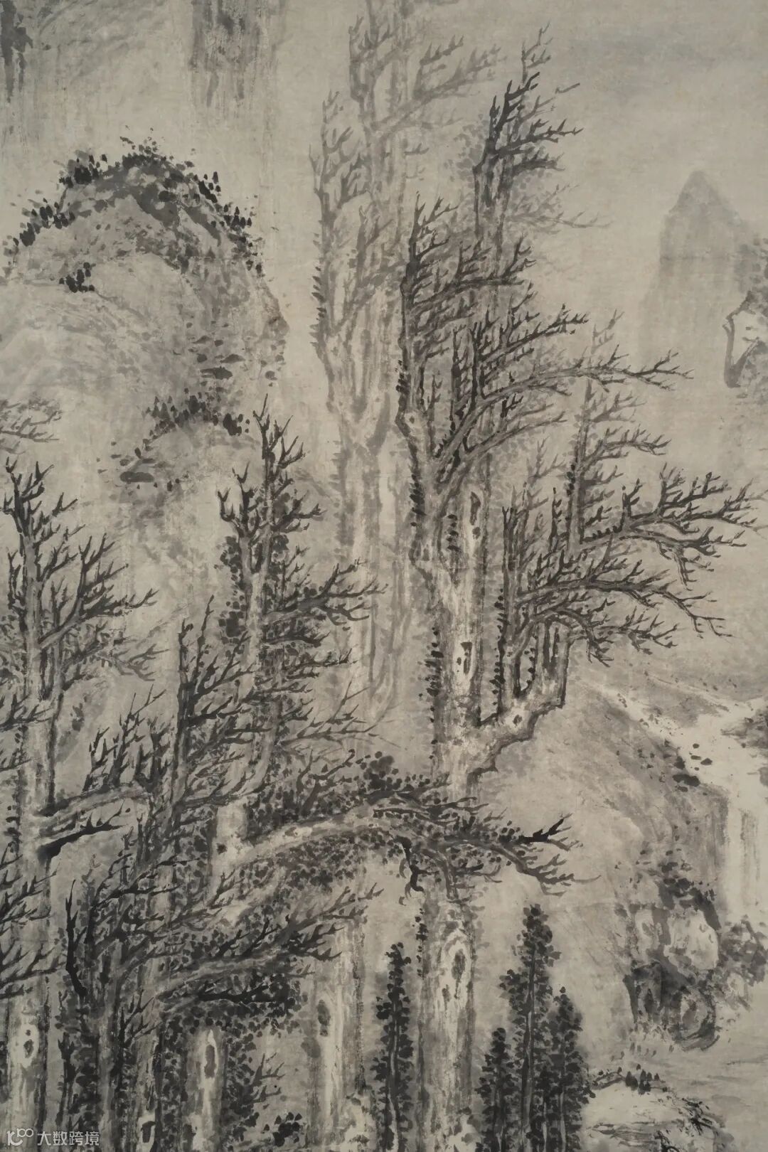 此幅《长林巨壑图》,尺寸巨大。老笔密思,苍劲淳厚,元气鼓荡,夺人心魂。
