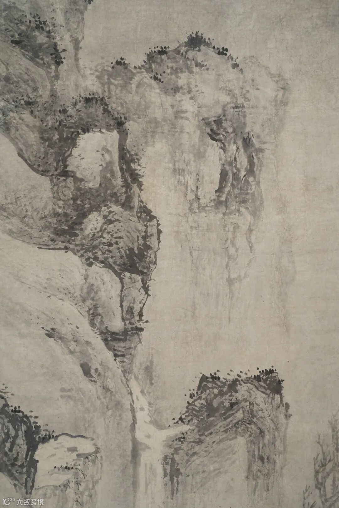 山石皴法以短披麻皴为基底,用“毛、涩、松”的笔触,融入斧劈皴的刚劲与解索皴的缠绵,通过干笔积墨营造出山石毛糙坚实的质感。