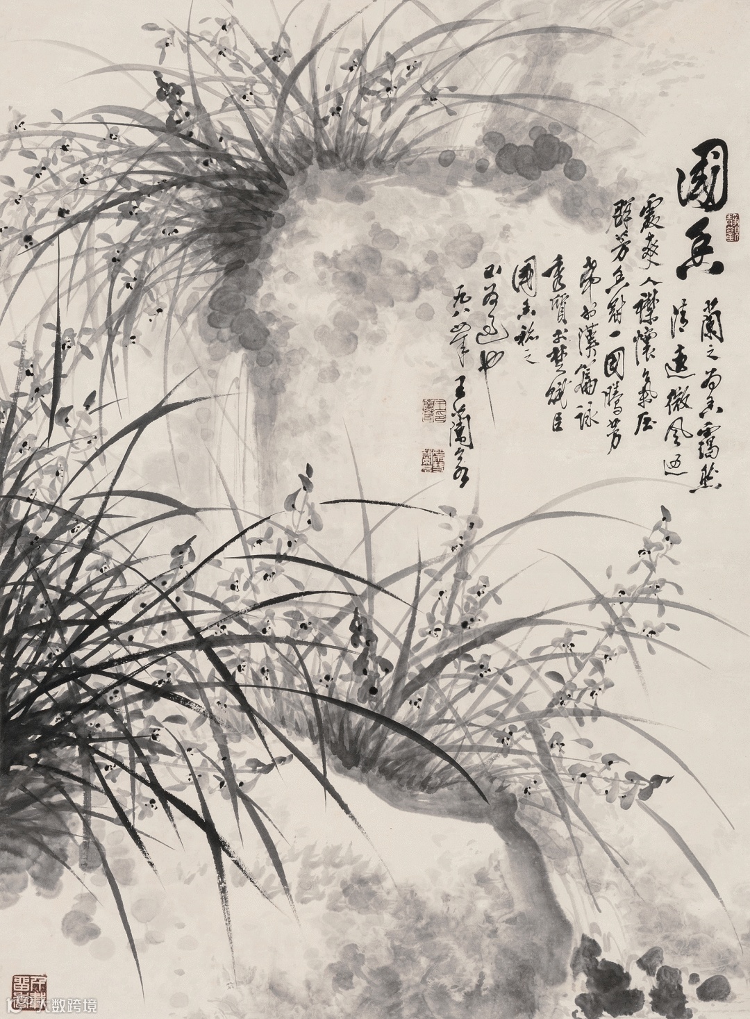 款识:兰之为香,霭然清远,微风过处,爽人襟怀,气压群芳,香冠一国。腾芳声于汉篇,咏秀质于楚赋。以国香称之,不为过也。一九八四年,王兰若。