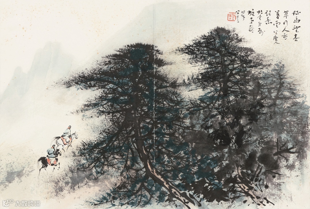 款识:征马望春草,行人看暮云。写唐人诗意,北全弟属,雄才画,时年八十又三。