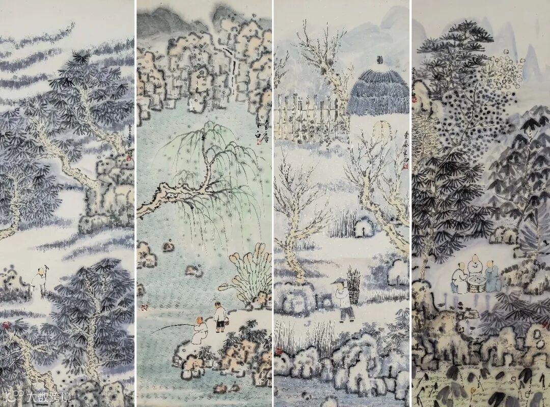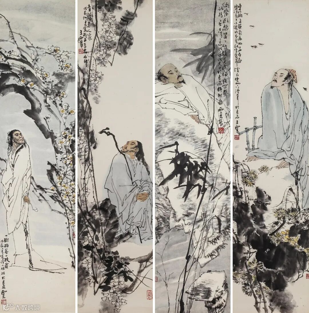 设色纸本 镜片 136×33cm×4