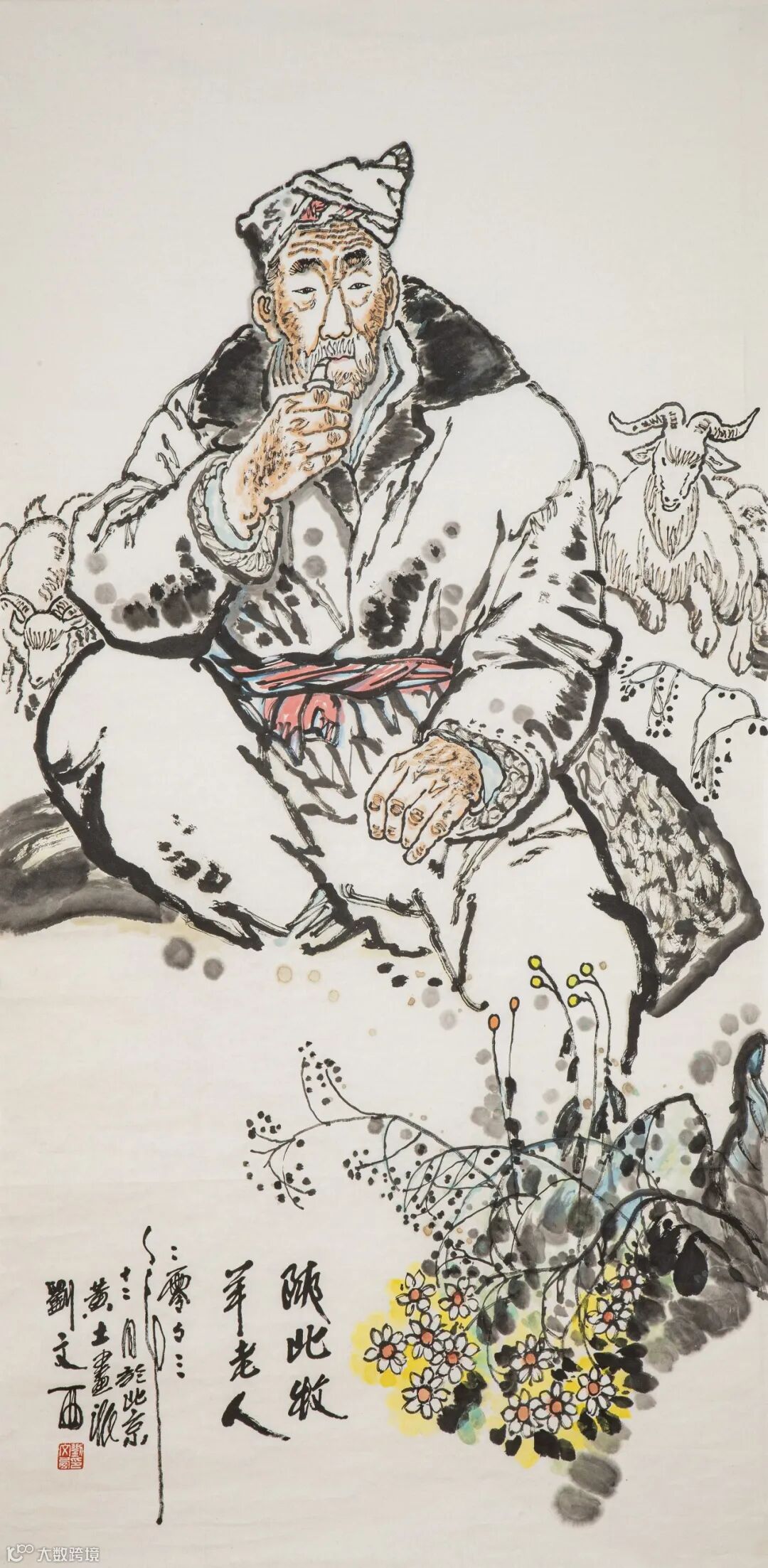 款识:陕北牧羊老人。二零零三年十二月于北京,黄土画派刘文西。