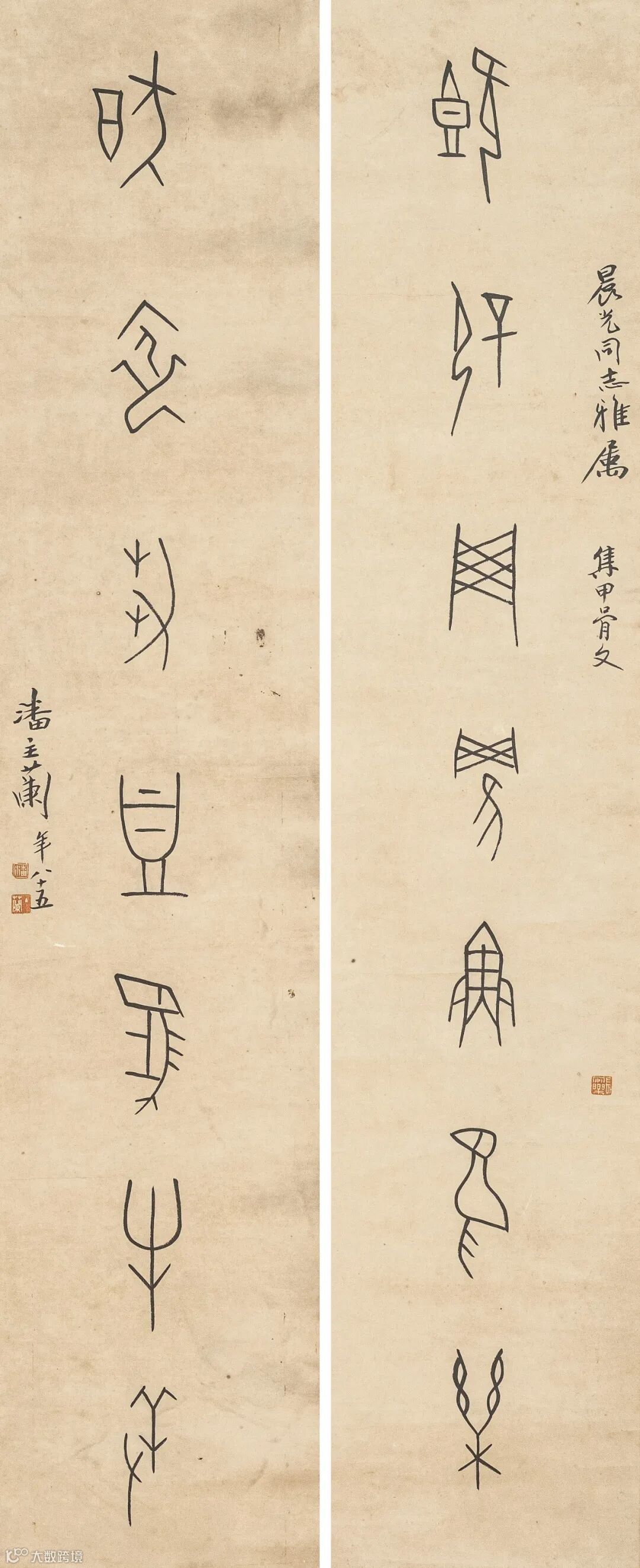 纸本 立轴 128×28cm×2