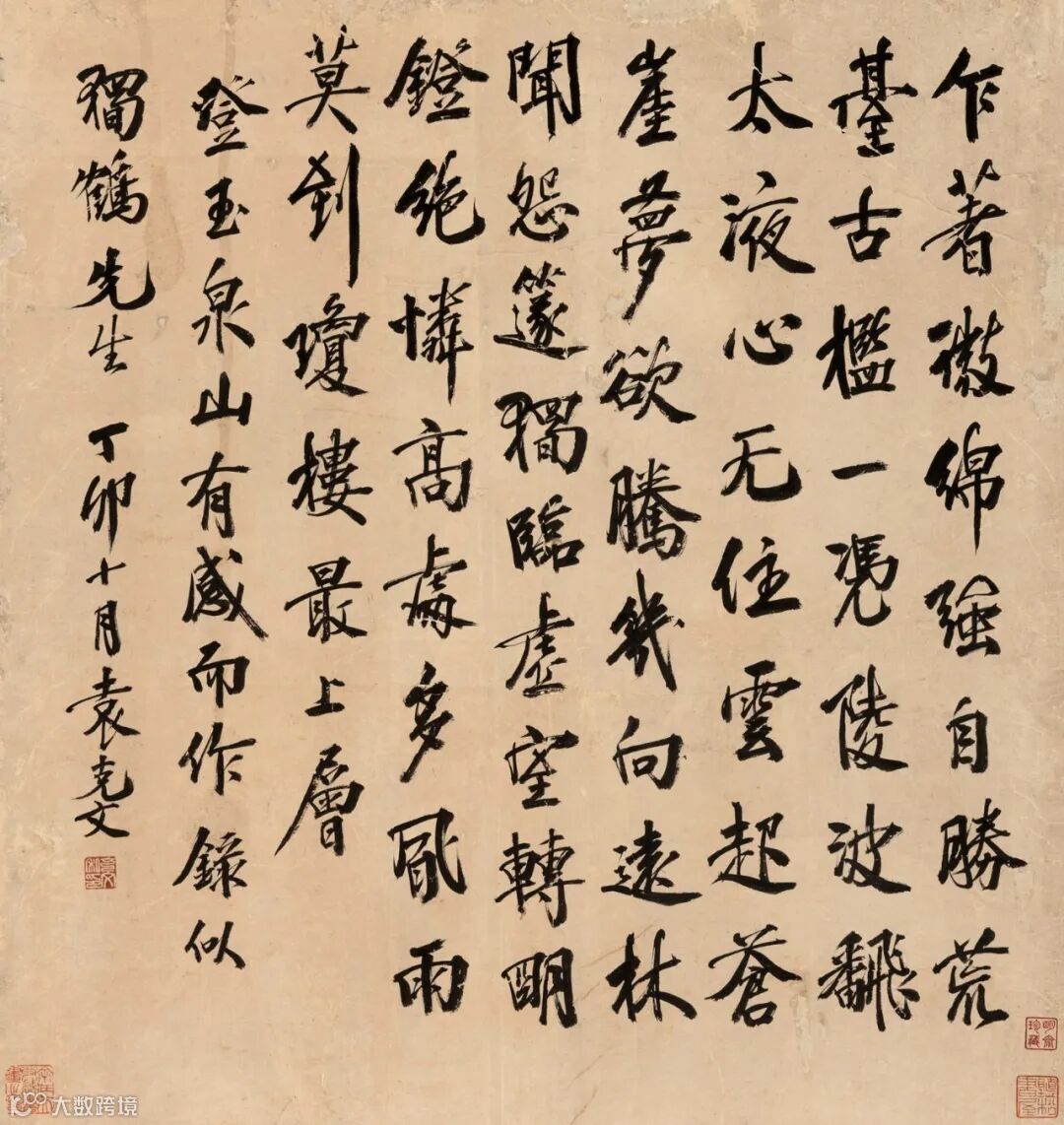 款识:登玉泉山有感而作,录似独鹤先生,丁卯十月袁克文。